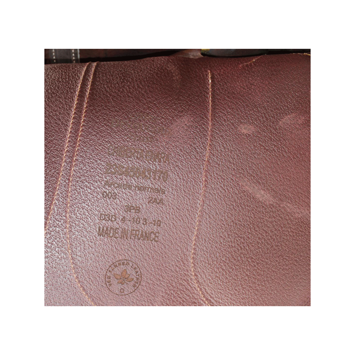 After each use, clean the leather with Devoucoux Belharra soap and the sheepskin glove or a damp sponge to remove impurities. Never apply soap directly to the leather.