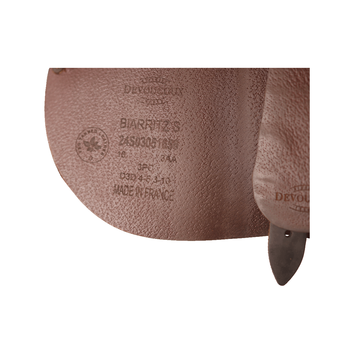 After each use, clean the leather with Devoucoux Belharra soap and the sheepskin glove or a damp sponge to remove impurities. Never apply soap directly to the leather.