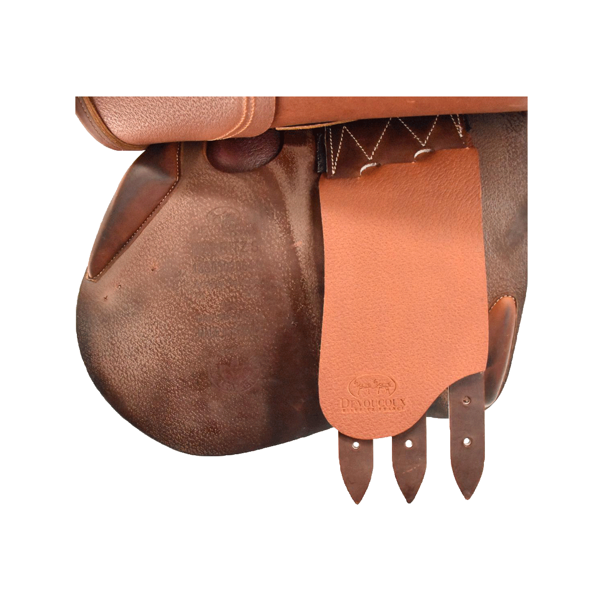 After each use, clean the leather with Devoucoux Belharra soap and the sheepskin glove or a damp sponge to remove impurities. Never apply soap directly to the leather.