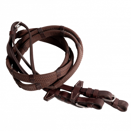 Les rênes caoutchouc arrêtoirs sont composées d’un caoutchouc souple et de nombreux arrêtoirs rapprochés en cuir. Elles permettent un meilleur maintien dans la main et l'assurance de garder une longueur de rênes symétrique.