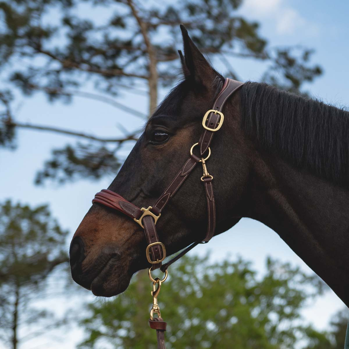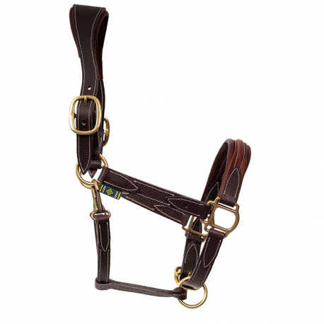 Le licol cuir présente une têtière ergonomique et doublée de veau pour le confort du cheval. Sa muserolle est doublée veau et bombée. Son double système de réglage de chaque côté de la têtière permet un ajustement parfait à la tête du cheval.