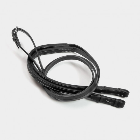 Les rênes Makila en cuir lisse sont composées d’une seule pièce de cuir sélectionnée pour sa grande résistance. D’une largeur de 16mm, les deux rênes sont reliées par une boucle. Ces rênes sont équipées de montage à crochet.