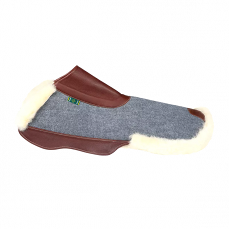 L'amortisseur en feutre imitation mouton répartit le poids du cavalier et de la selle sur le dos du cheval. Le dégagement du garrot en cuir permet d’éviter la pression sur cette zone particulièrement sensible. La laine naturelle participe au confort du cheval grâce à ses fibres élastiques qui jouent un rôle amortisseur. Idéal pour les chevaux sensibles, ce tapis participe à la préservation de leur dos et prévient de certains troubles dorsaux. Disponible en feutre gris et imitation mouton.